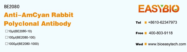 Specificity: The AmCyan tag antibody can recognize AmCyan and AmCyan tag fusion proteins.