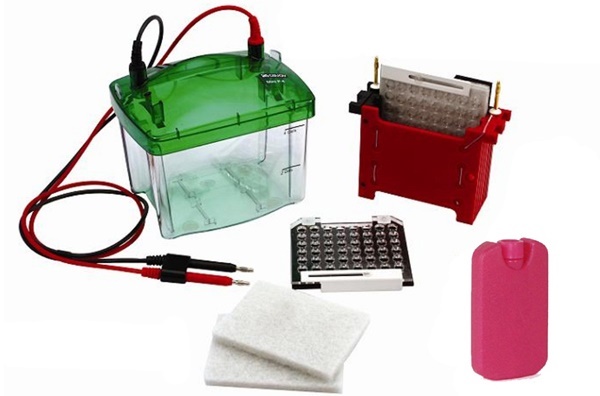 铂金电极相距4cm,以产生强电场保证有效蛋白转印。