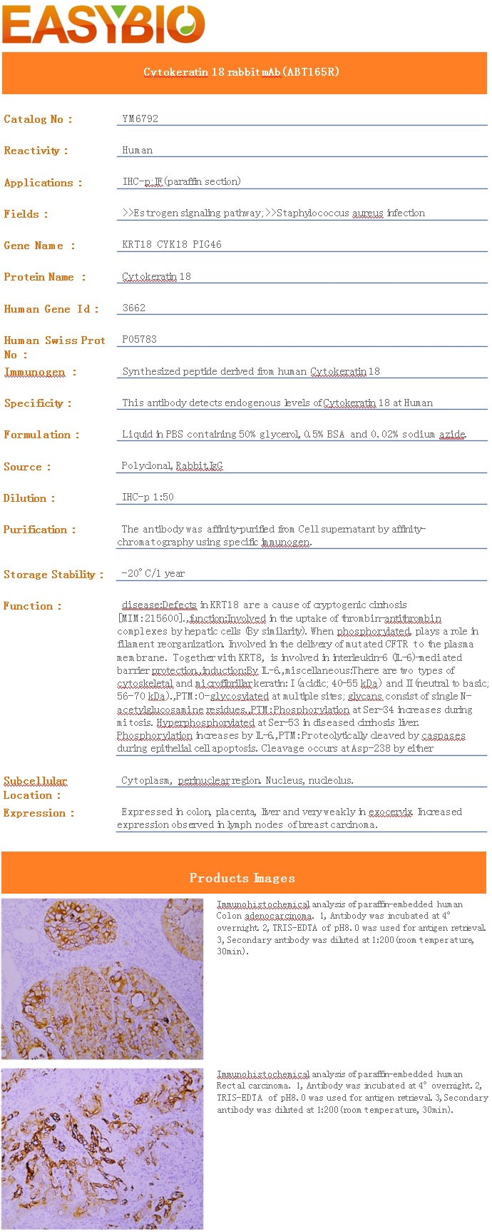 Product Name: Cytokeratin 18 rabbit mAb(ABT165R)