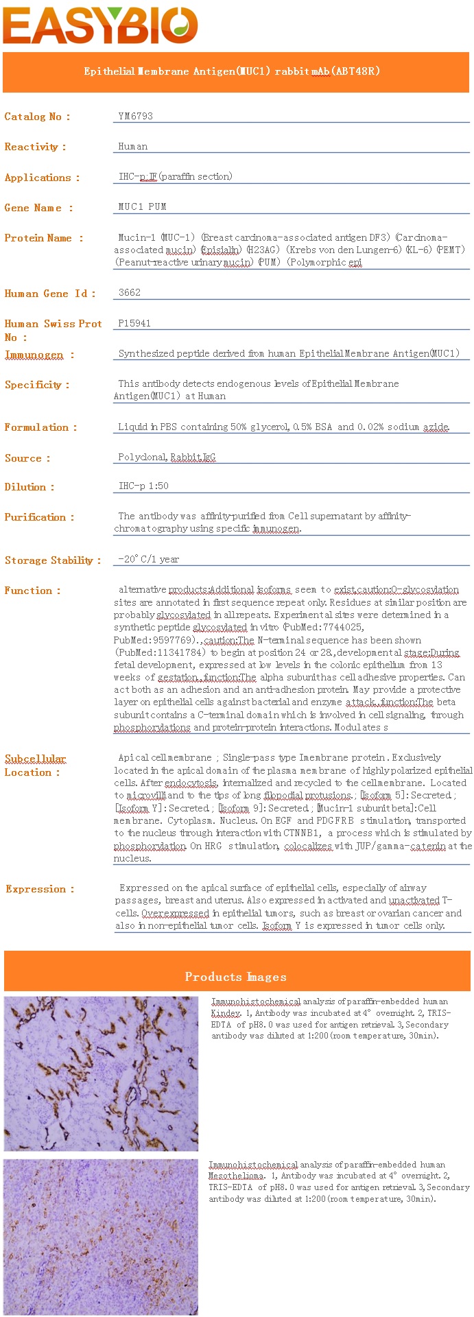 | Product Name: | Epithelial Membrane Antigen(MUC1) rabbit mAb(ABT48R) |