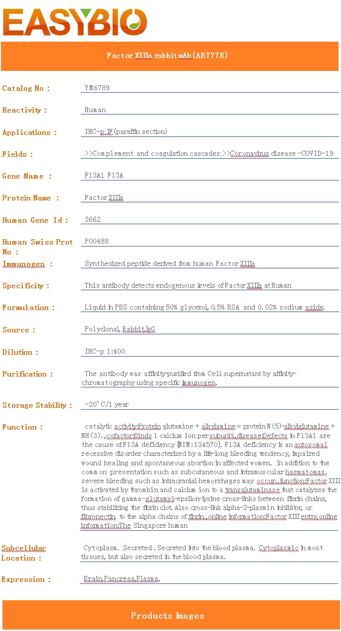 | Product Name: | Factor XIIIa rabbit mAb(ABT77R) |