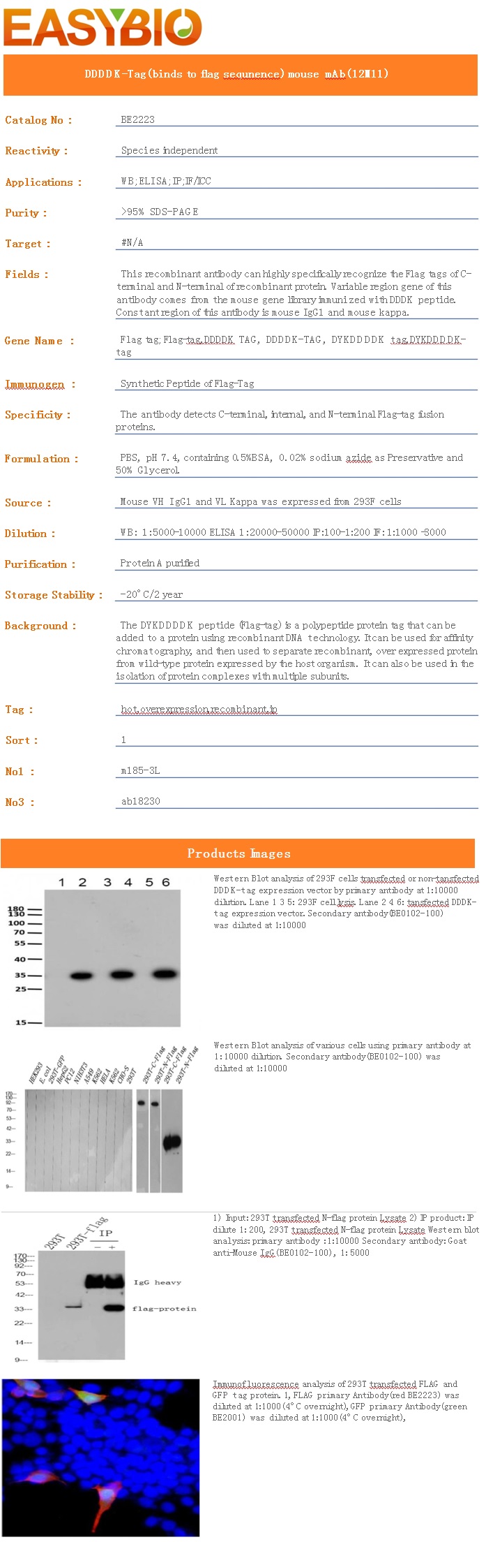 | Product Name: | DDDDK-Tag(binds to flag sequnence) Mouse Monoclonal Antibody |
