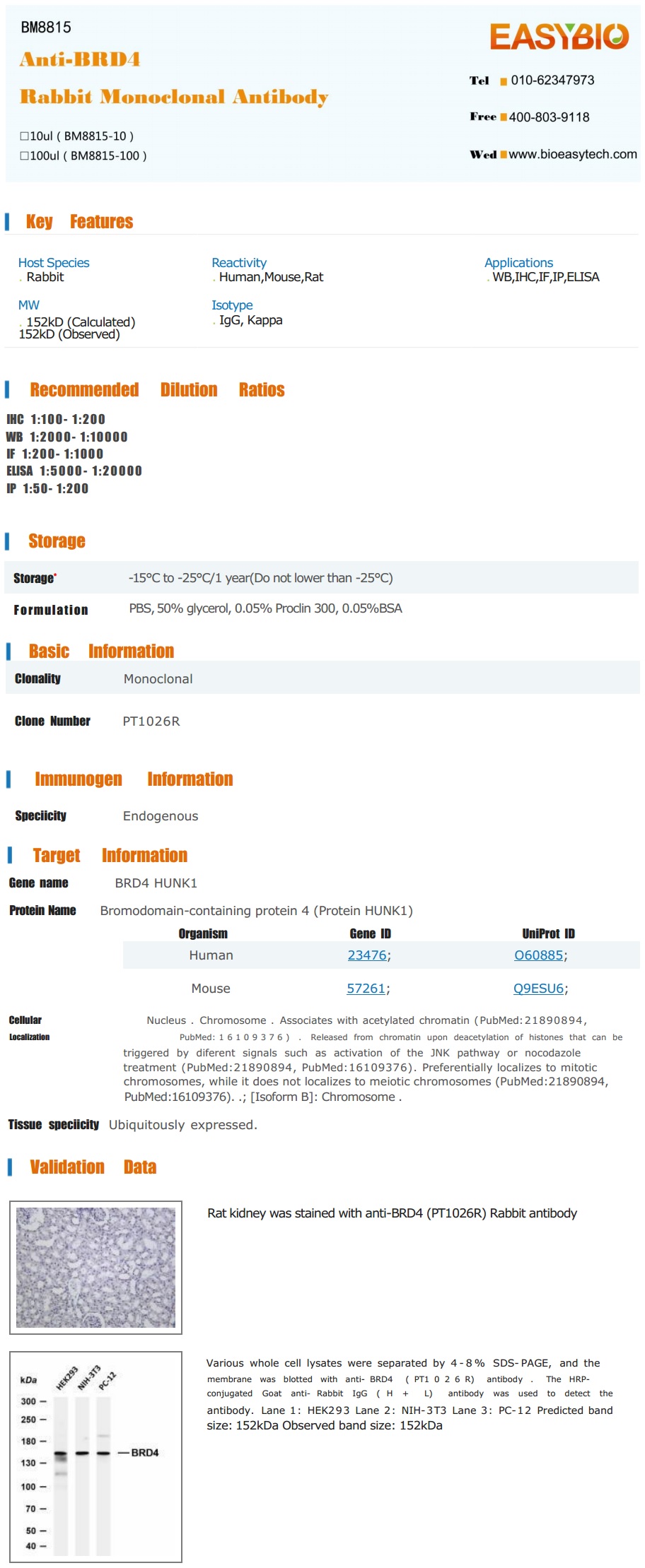 | Product Name: | BRD4 Rabbit Monoclonal Antibody |